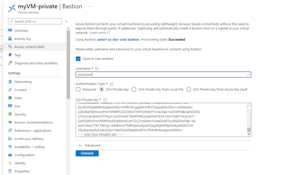 Currently this method is insecure, since it is located in the tfstate file. Take note this is for demo purposes only.Connect to two virtual machines, both public and private. (Be sure port 22 is open when you are trying to ssh).